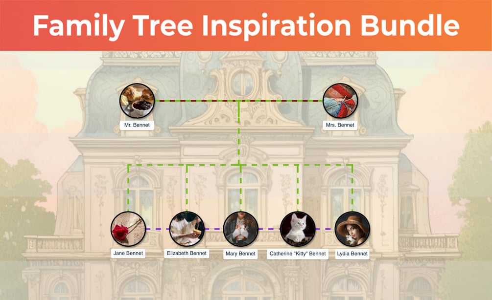 This bundle is packed full of goodies to inspire your creativity and to help you make a family tree quickly in Plottr, and make it look amazing. And we'll teach you how to use it effectively in your marketing as well!
